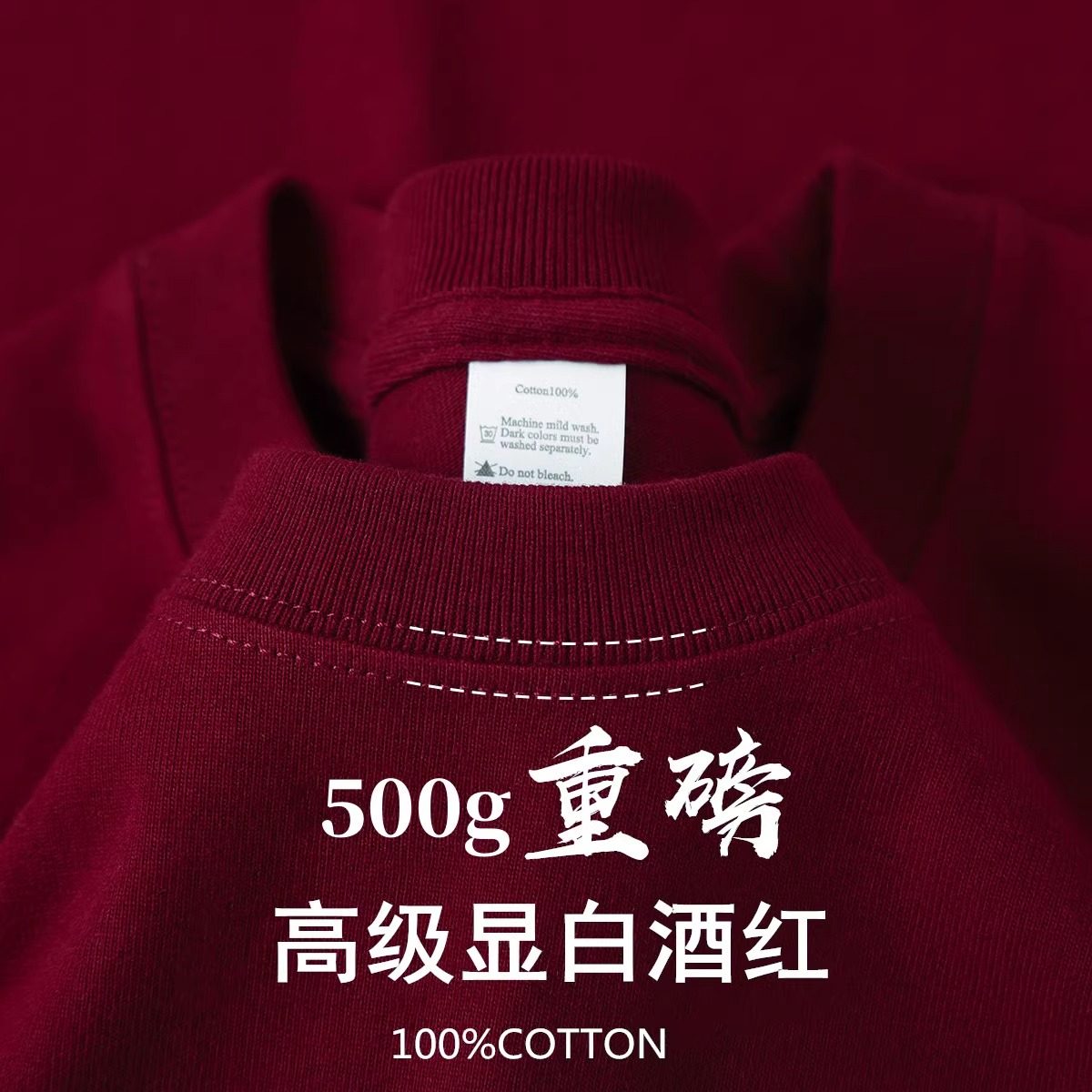 500G重磅纯棉美式小领口长袖t恤男春秋纯色圆领卫衣女大码打底衫