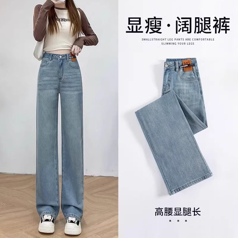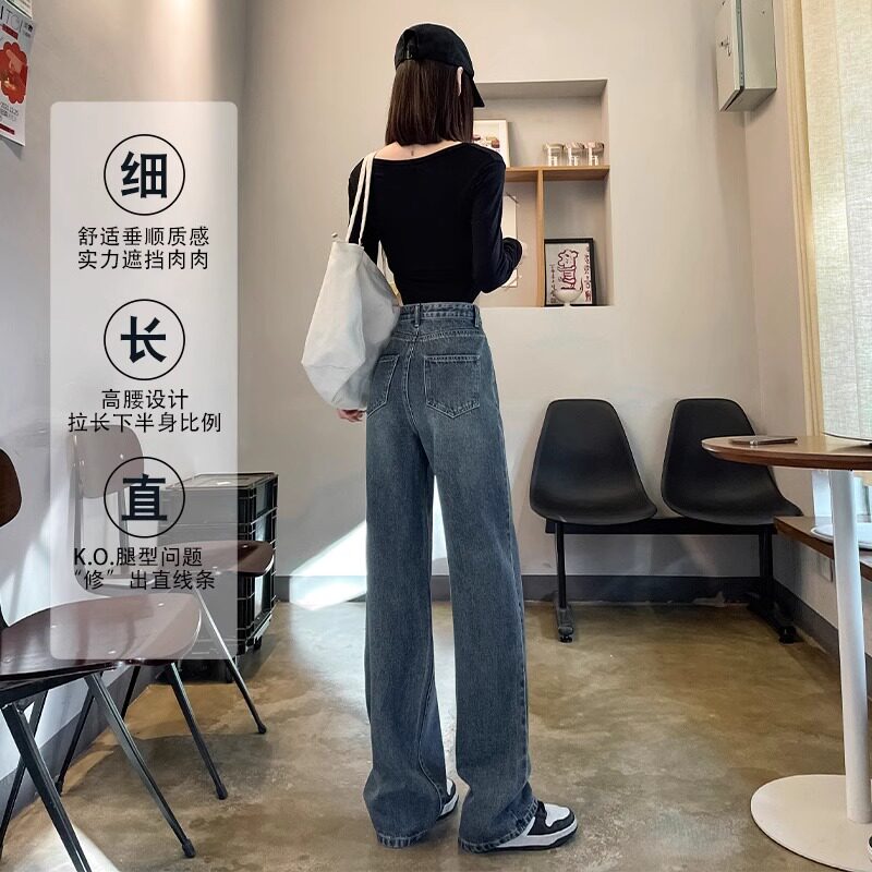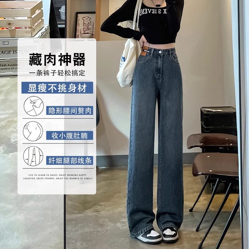 大码胖mm阔腿牛仔裤女2024年新款爆款高腰春款宽松显瘦窄版直筒裤