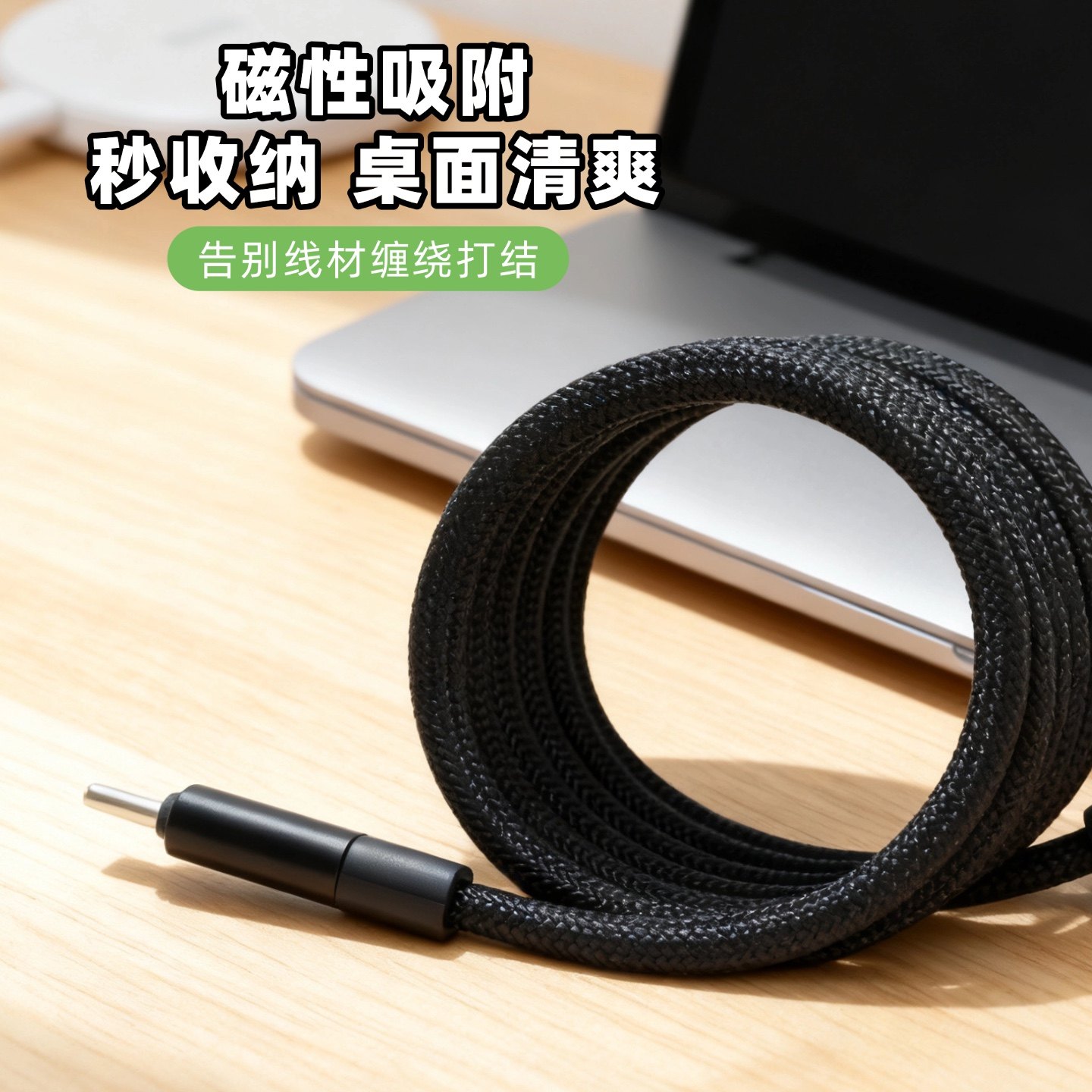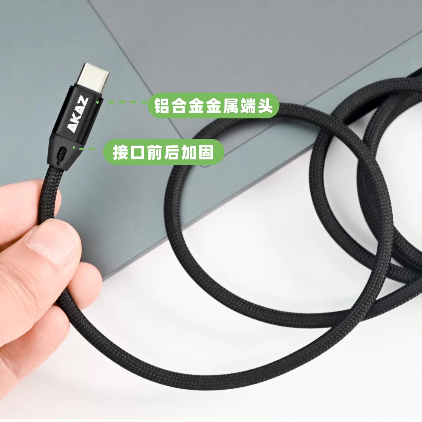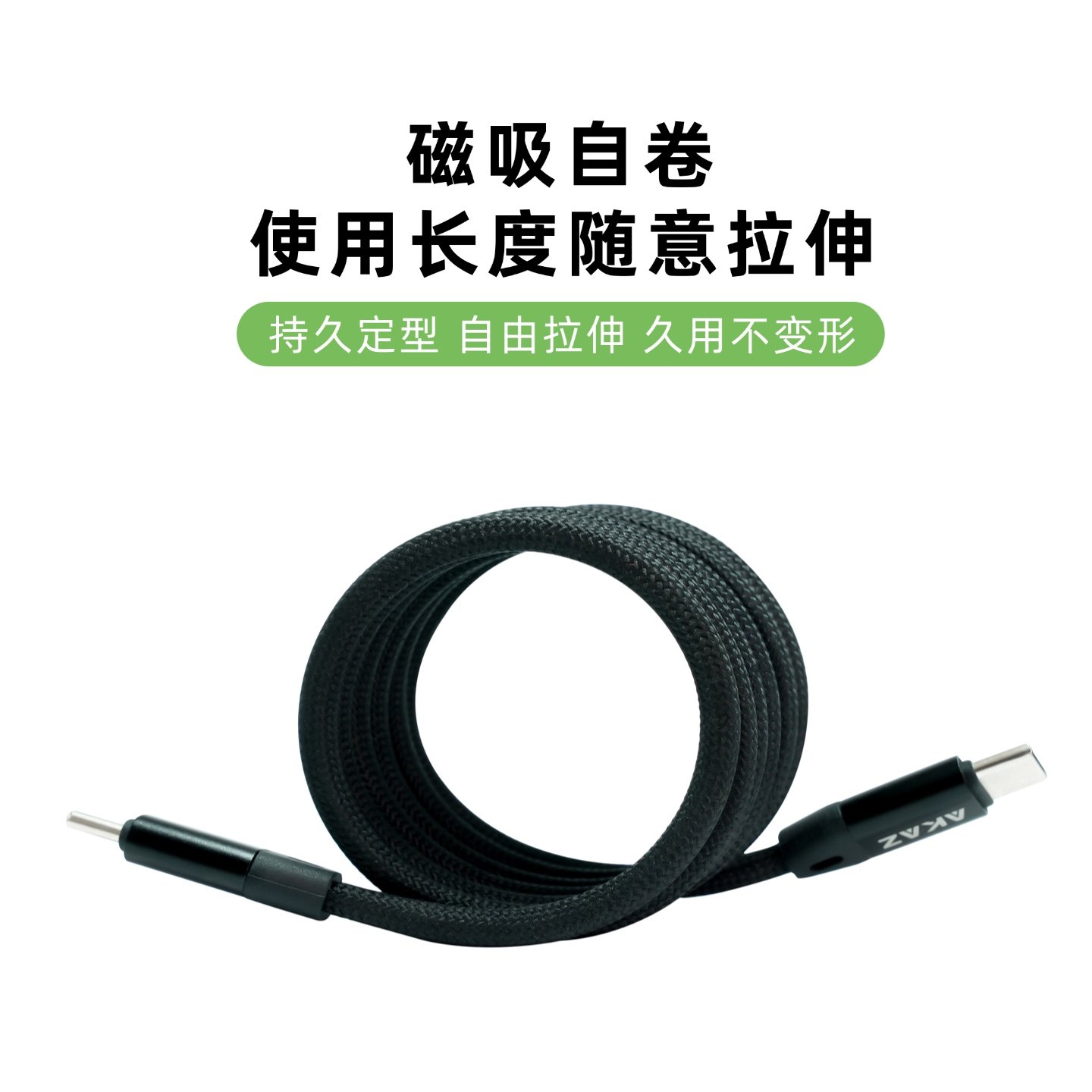 AKAZ磁吸双C数据线PD快充240W吸附收纳编织两端typec口标准USB-C线usb2.0传输