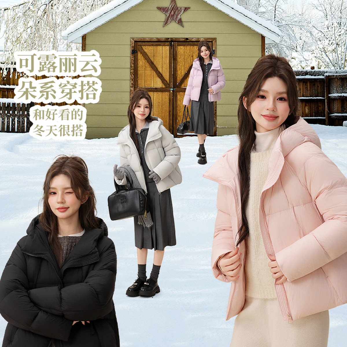 【云朵泡芙】雪中飞2026春新款短款羽绒服女冬小个子柔感蓬松简约