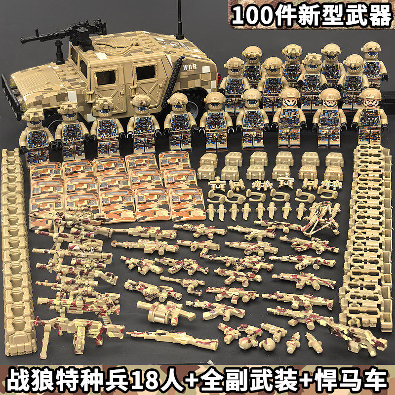 积木军事特种兵人仔战狼人偶坦克装甲车模型益智拼装玩具迷彩拼插