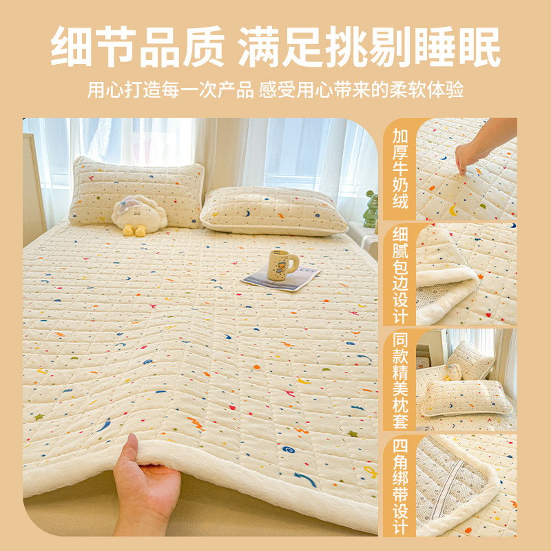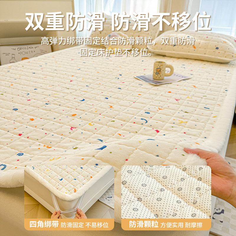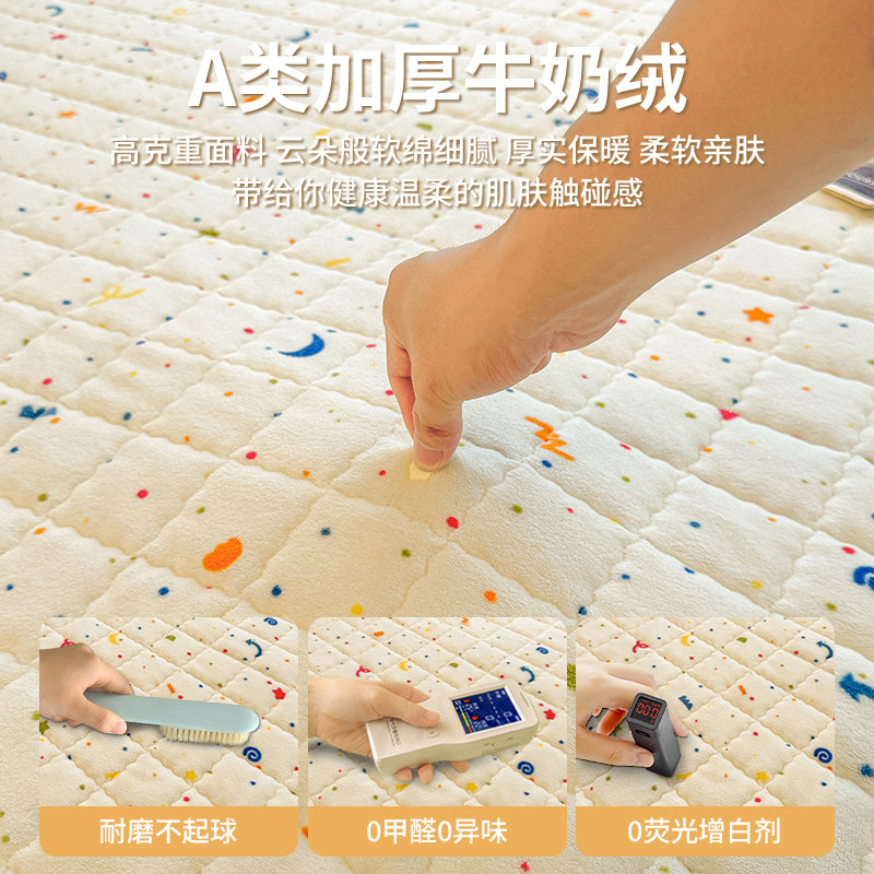 加绒加厚牛奶绒床褥 抗静电不掉毛
