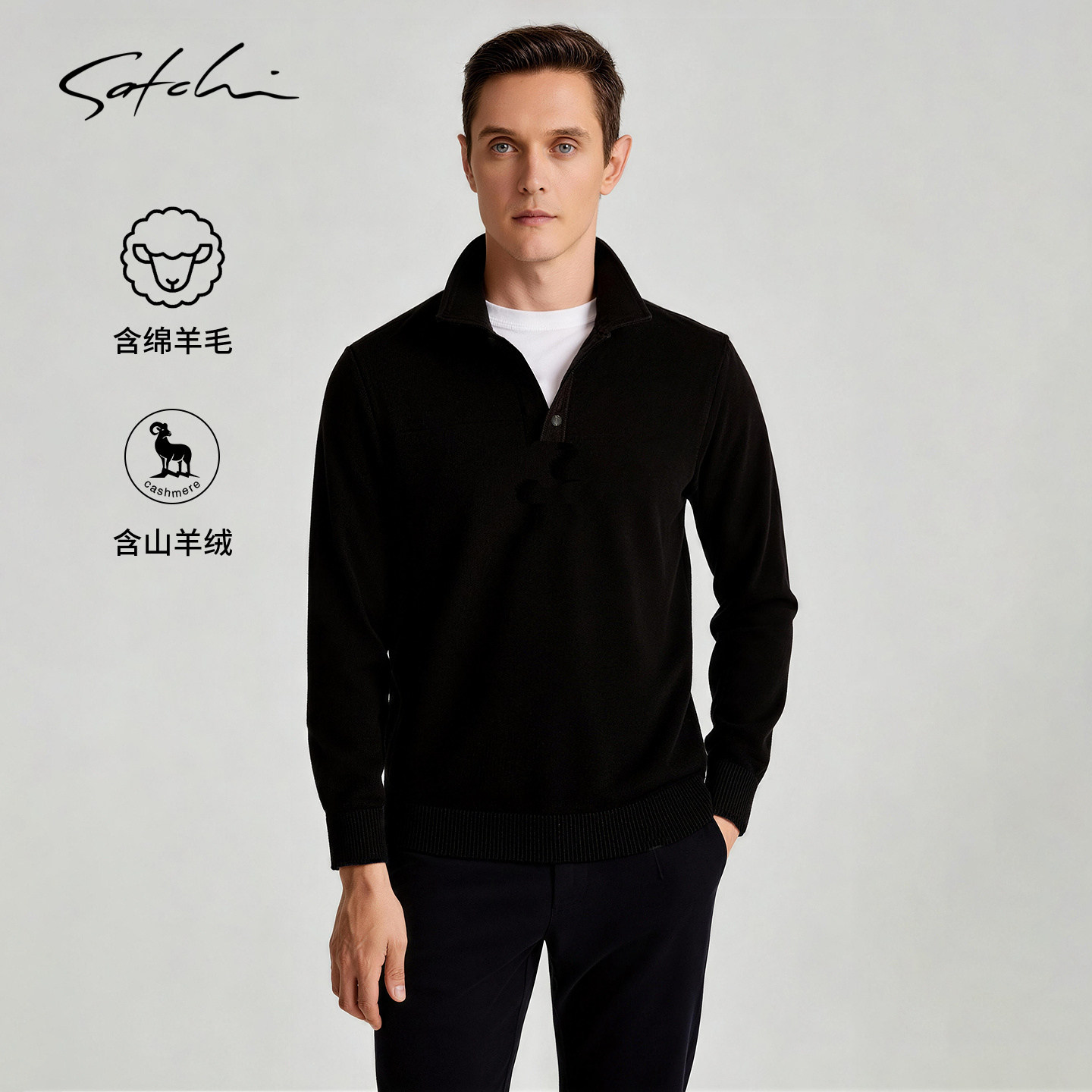 SATCHI沙驰男装男士POLO羊绒衫冬季羊毛商务高端保暖毛衣针织套衫