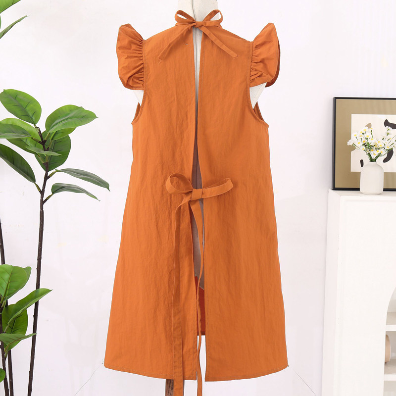 2026日本新款棉麻长袖围裙家用厨房透气罩衣女耐磨防污做饭工作服