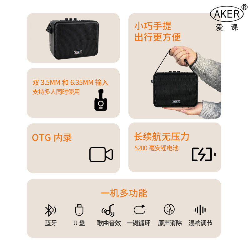 AKER/爱课 AK95扩音器二胡电吹管乐器用户外大功率便携蓝牙音响