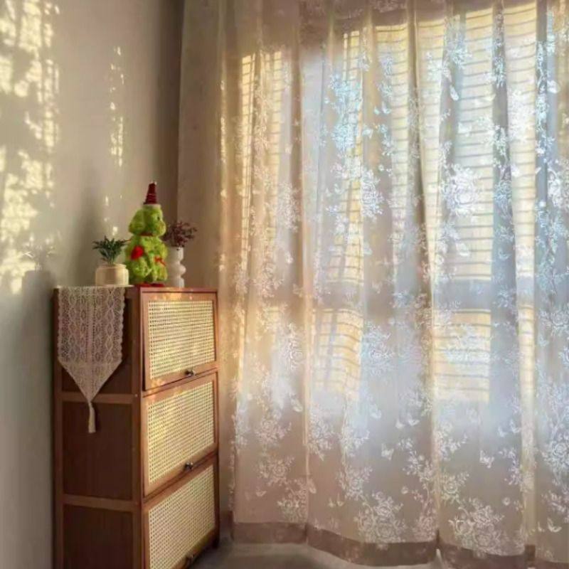 法式纱帘透光不透人客厅2025窗帘隔断纱防晒氛围蝴蝶纱飘窗美学