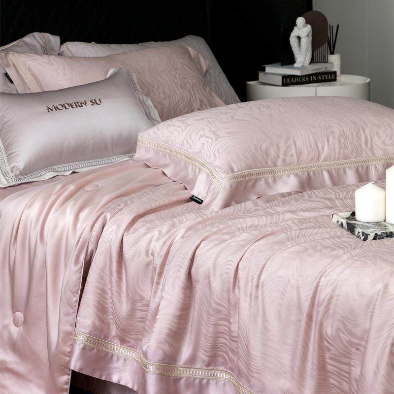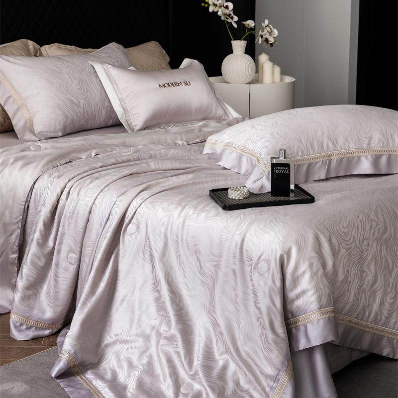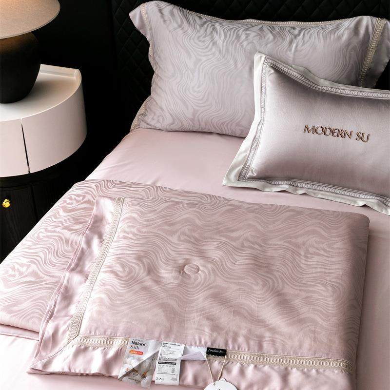 轻奢兰精天丝夏被裸睡凉感被提花刺绣蚕丝被莱赛尔天丝夏凉被子