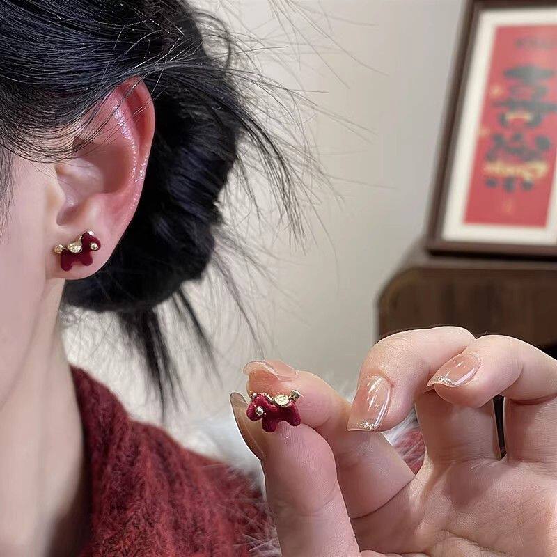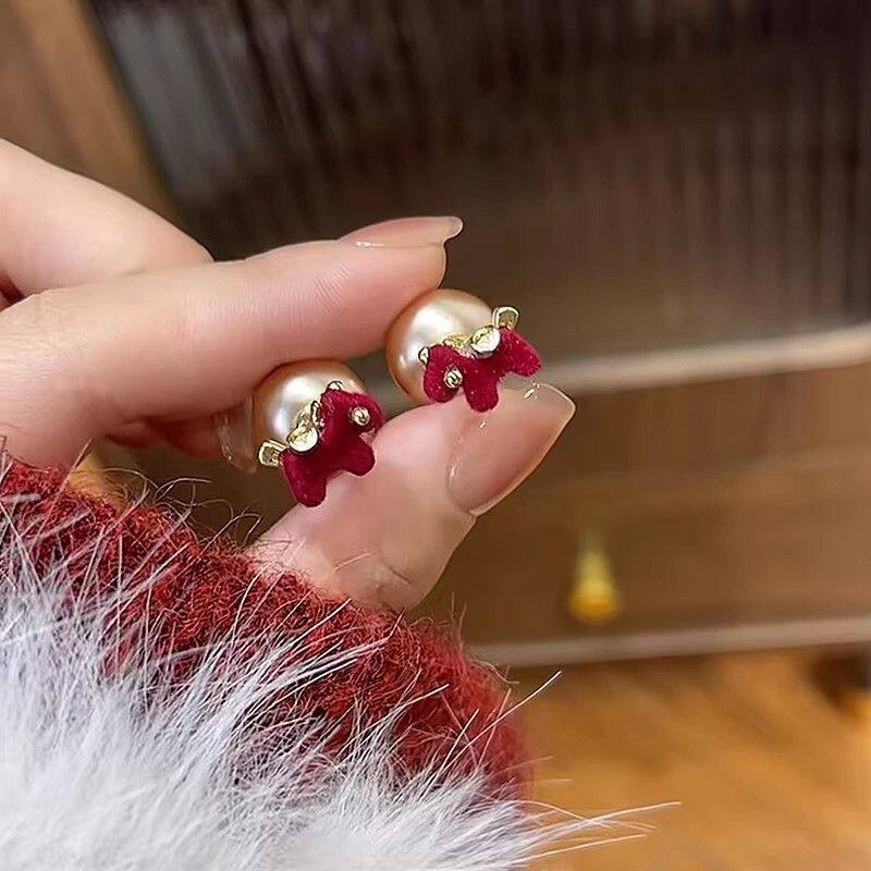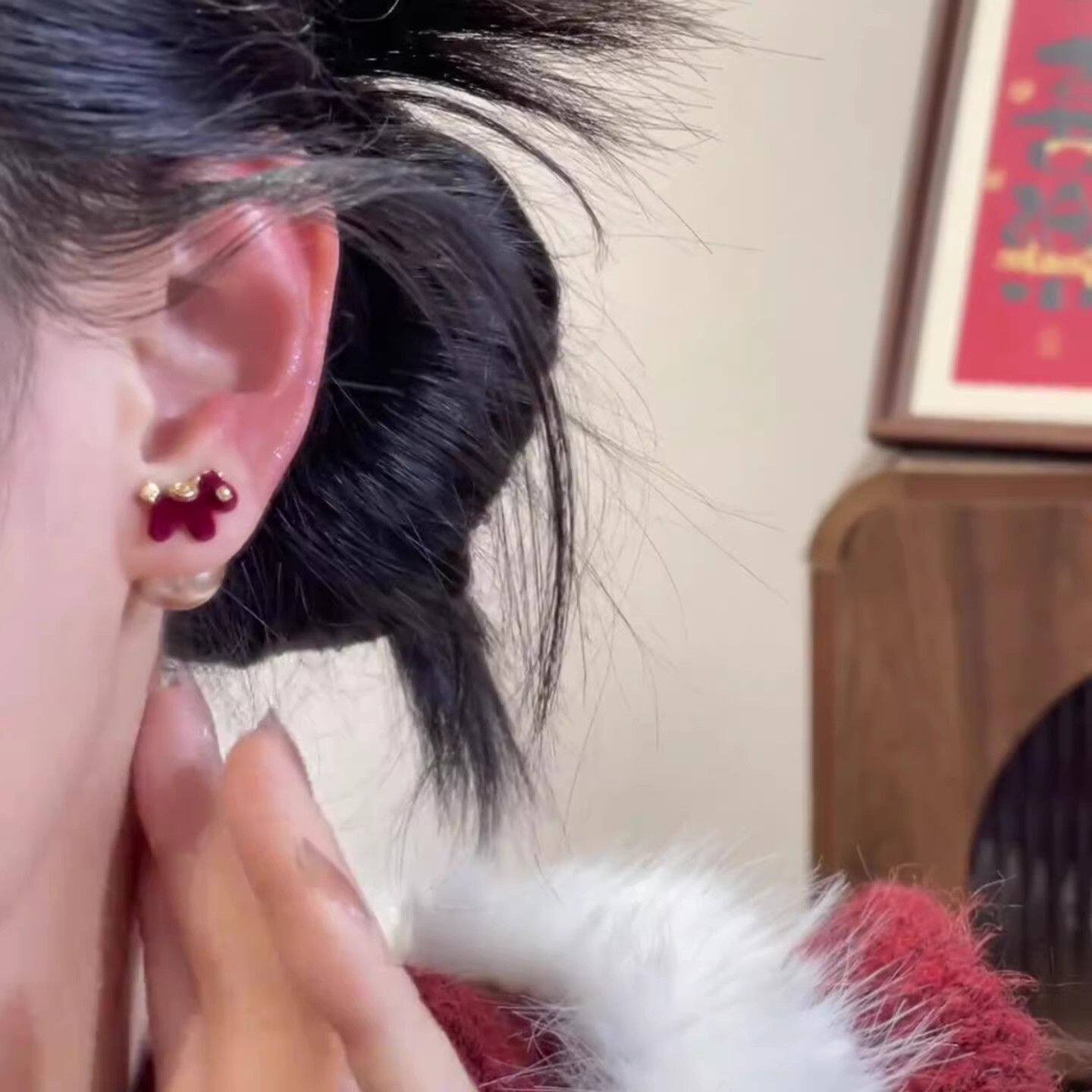 过年气质设计感红色小马珍珠耳钉女小众时尚轻奢高级感耳环耳饰
