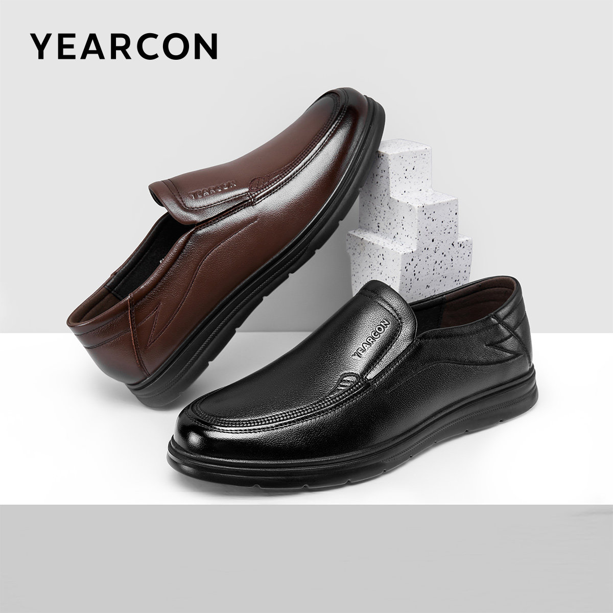 意尔康男鞋2025新款真皮商务休闲皮鞋男士软底一脚蹬中年爸爸鞋