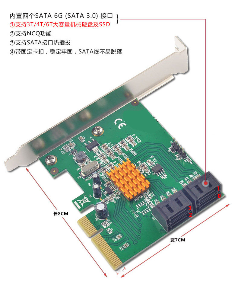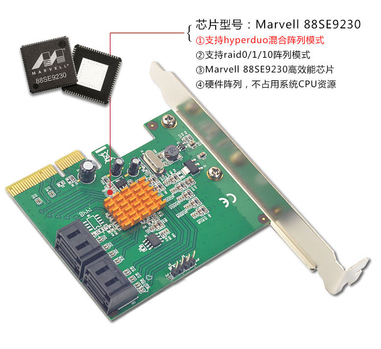 西霸FG-EST17A Marvell 9230芯片转换卡4口SATA 6G RAID阵列卡