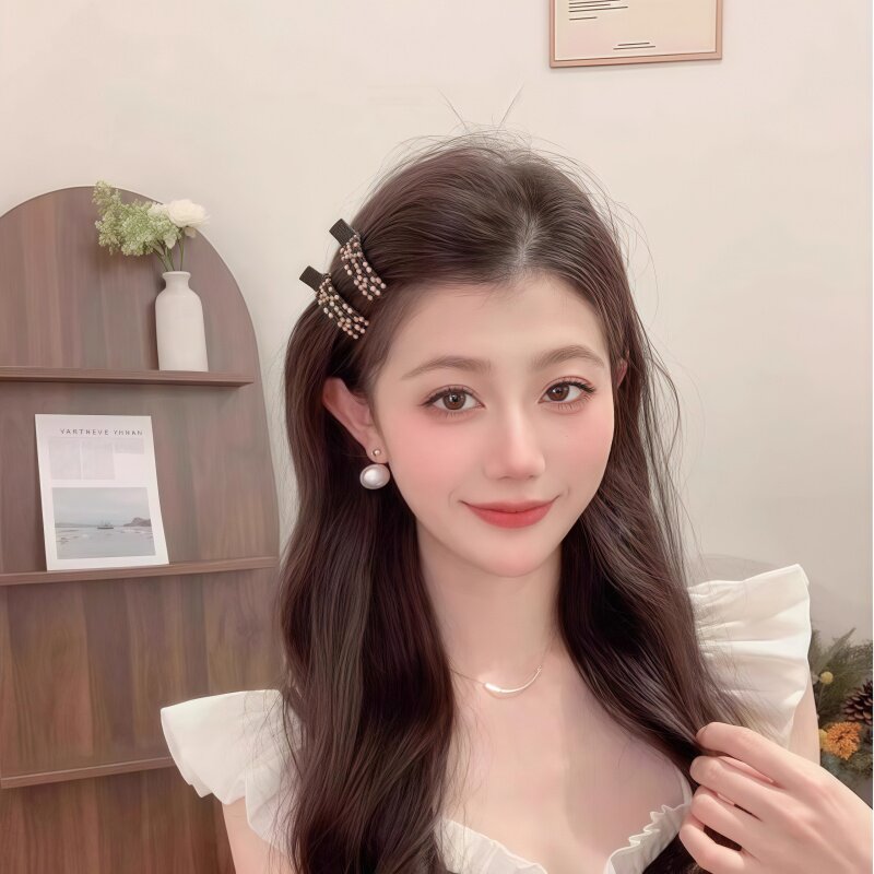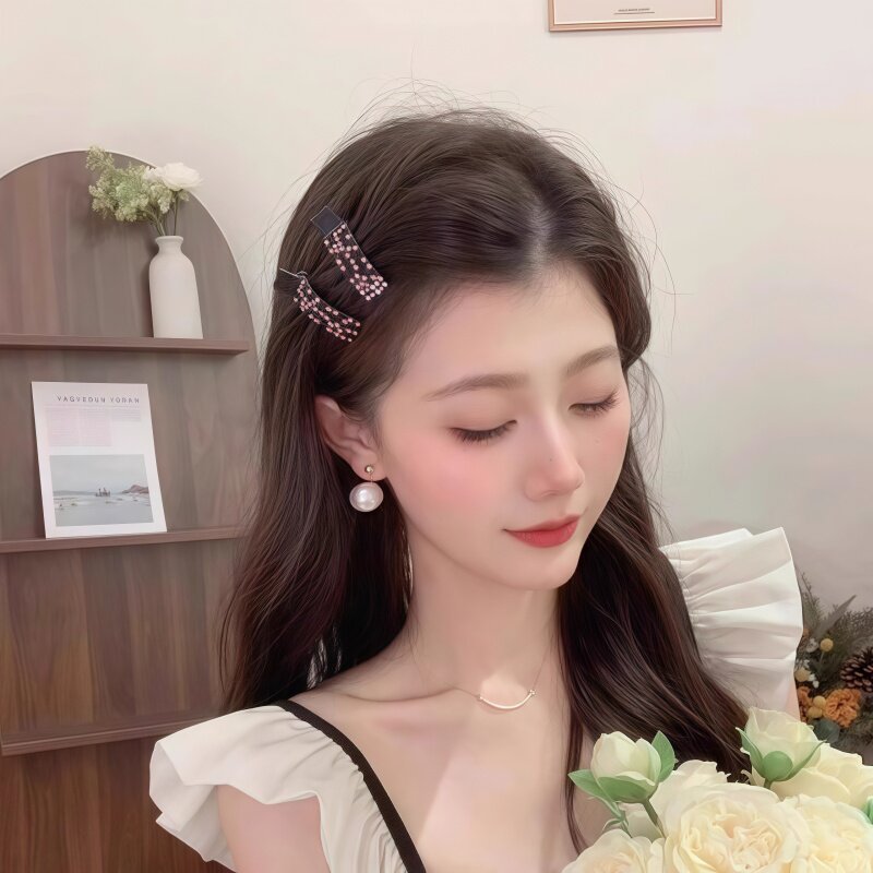 少女小金属刘海碎发一字鸭嘴造型侧边美妆发夹女发卡黑色夹子发饰
