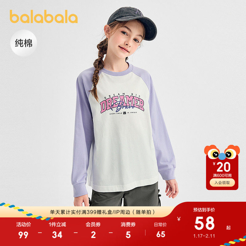 巴拉巴拉儿童长袖t恤男童女童2025秋季新款纯棉上衣