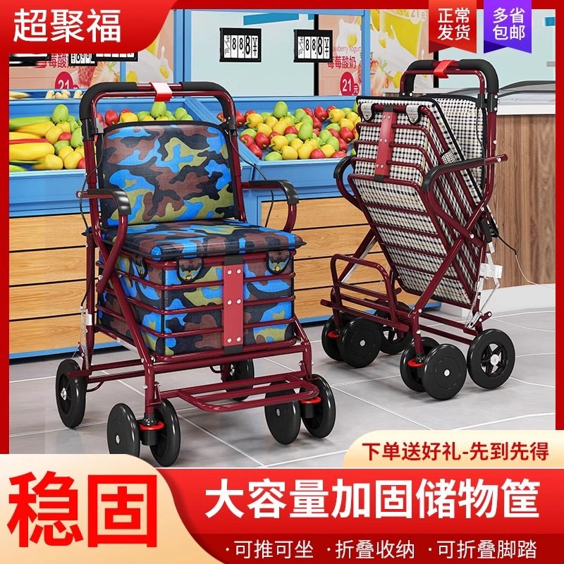 老人手推车可坐可折叠买菜车助行代步车四轮便携购物车老年小拉车
