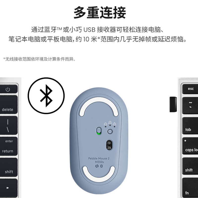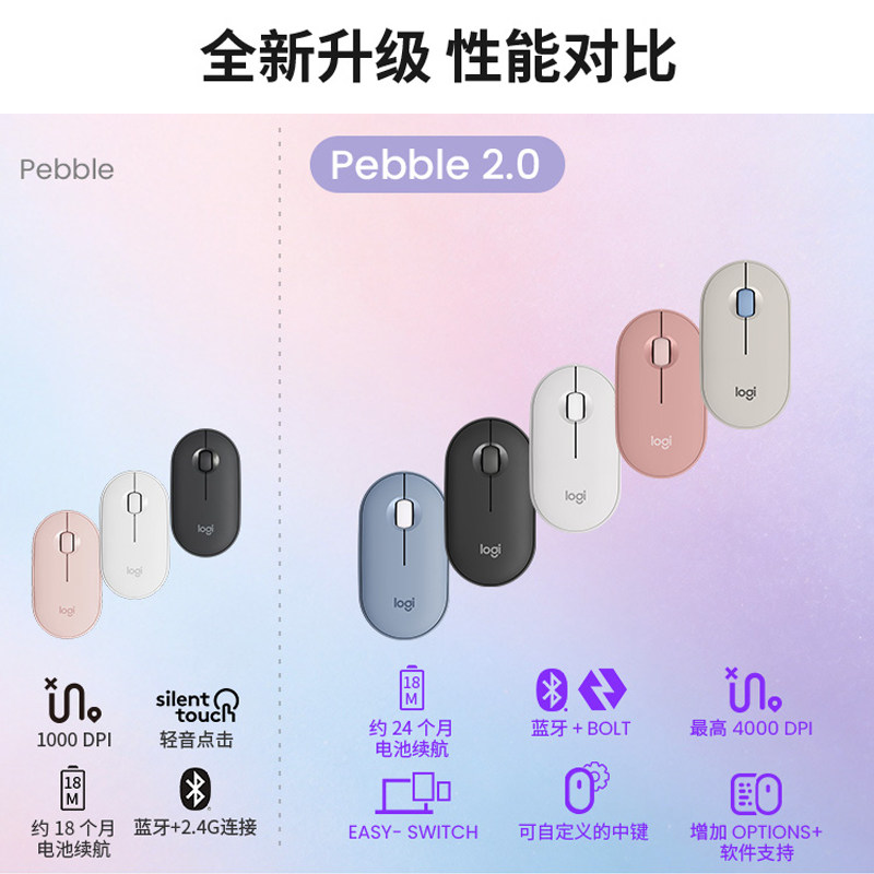 罗技 Pebble2.0蓝牙双模鼠标静音办公ipad平板跨屏超薄便携女生