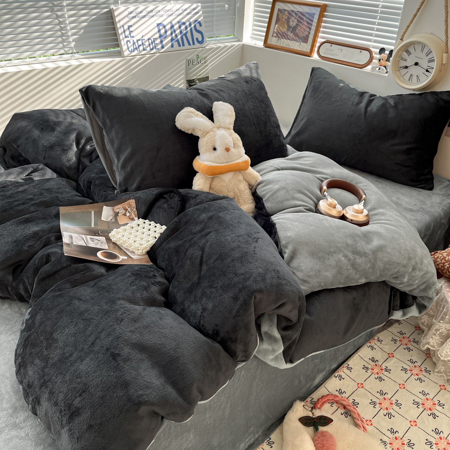 无印良品纯色秋冬牛奶绒四件套珊瑚绒床上绒三件套冬季加绒法兰绒
