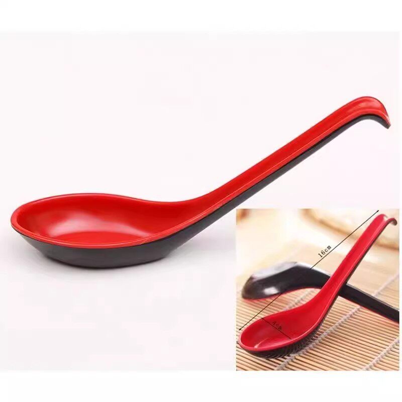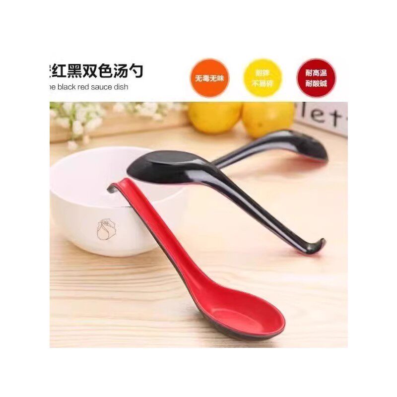 密胺汤勺长柄商用耐高温餐厅饭店黑红带勾仿瓷塑料小勺子调羹汤匙