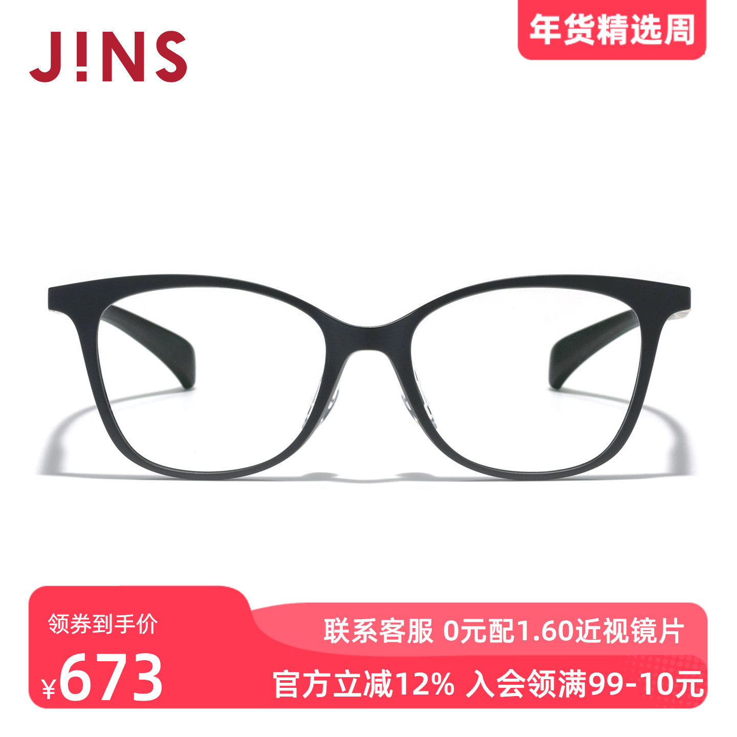 JINS睛姿近视眼镜360°系列男女方框架可加配防蓝光镜片URF24S265