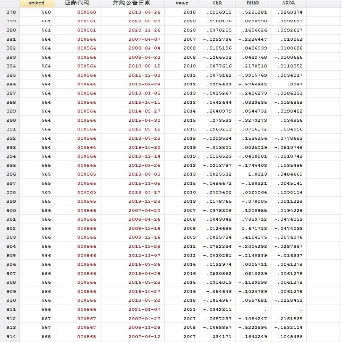 【并购绩效】上市公司并购短期绩效和长期绩效数据整理Stata