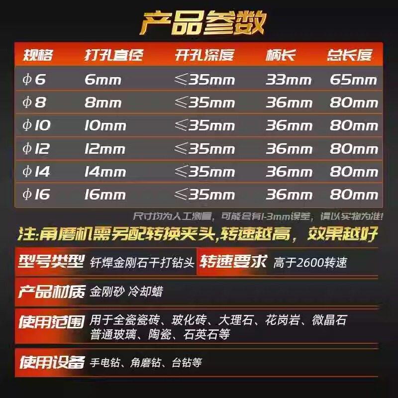 瓷砖打孔钻头不加水玻璃大理石干打石材陶瓷全瓷玻化砖专用开孔器