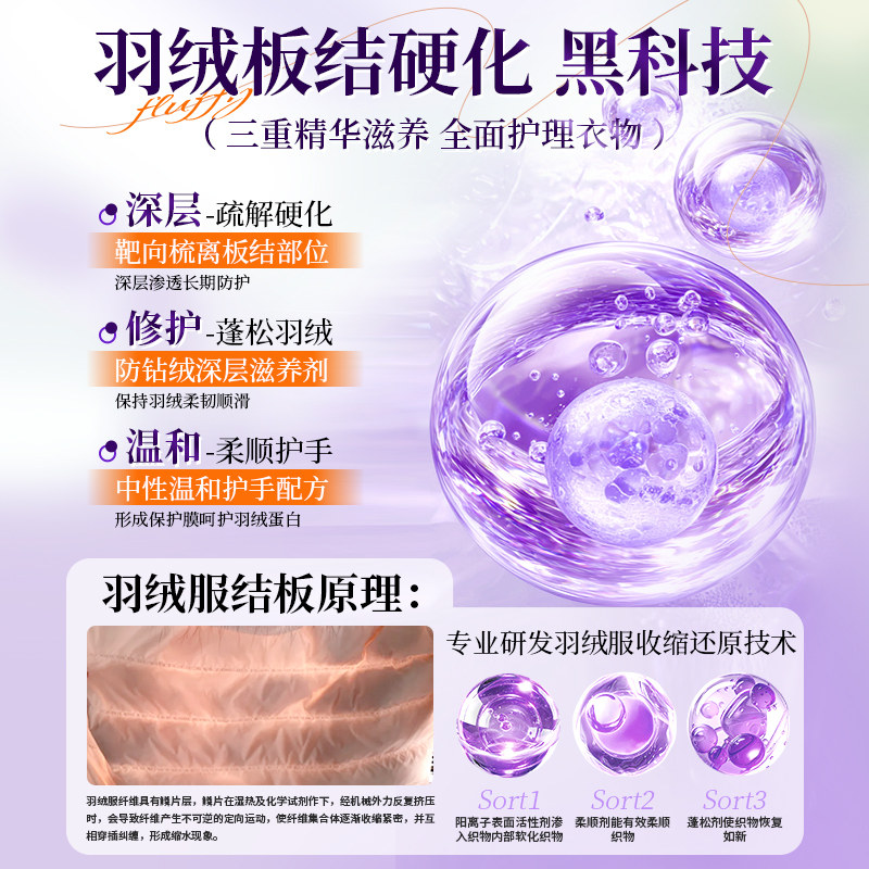 羽绒服蓬松洗涤剂清洗清洁洗衣机洗专用衣物洗衣液去污渍膨松神器