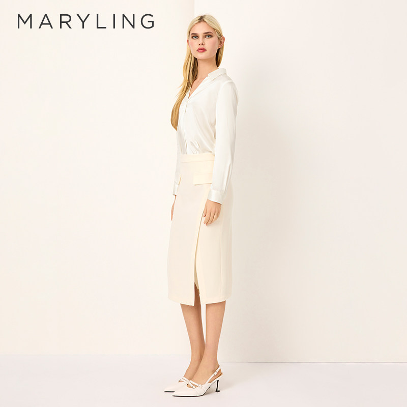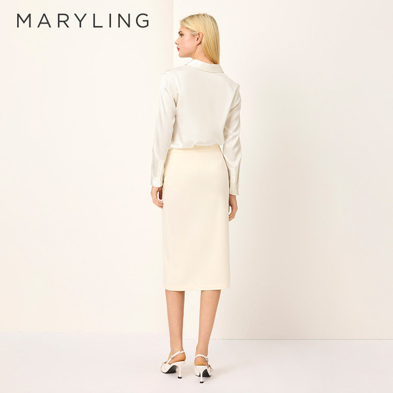 MARYLING玛俪琳2025初春新品米白色V领真丝衬衣A1FAW26150
