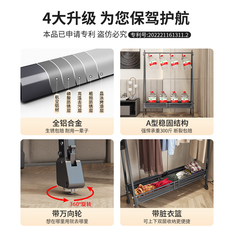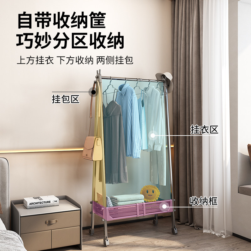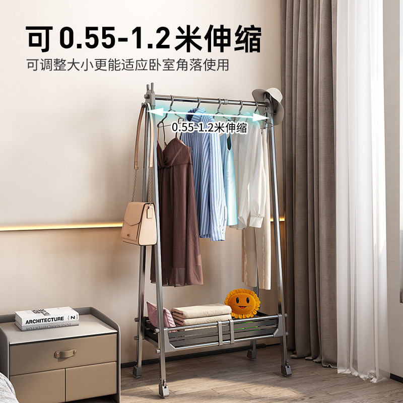 晾衣架落地家用可移动卧室凉衣架阳台挂衣服架子室内简易杆衣帽架
