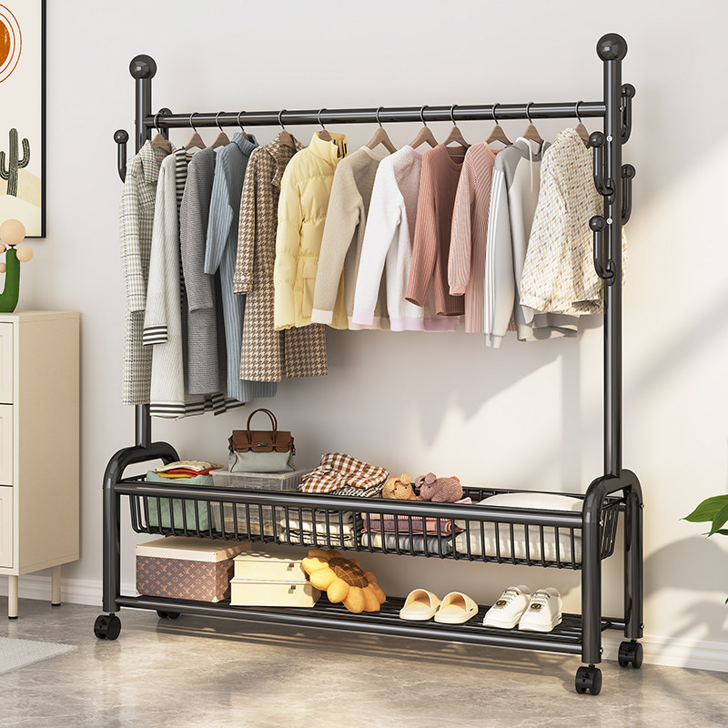 网红可移动挂衣架落地卧室家用室内衣服收纳置物架衣帽架客厅阳台