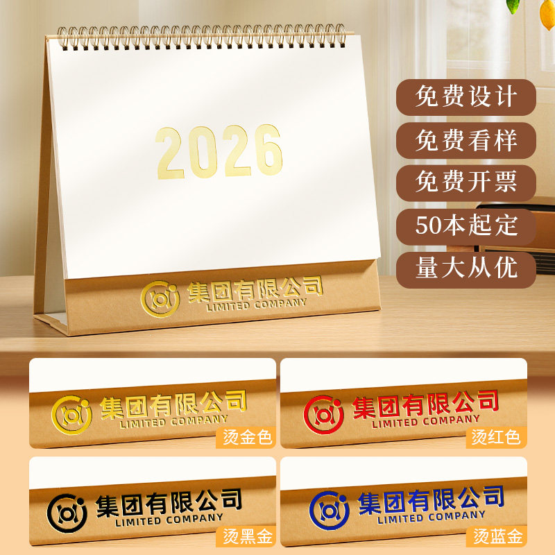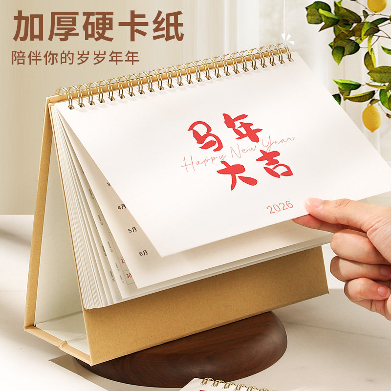 2026年新款简约牛皮纸马年台历商务办公摆件打卡中大号简约文艺ins风翻页日历定制企业logo台式新年月历订制