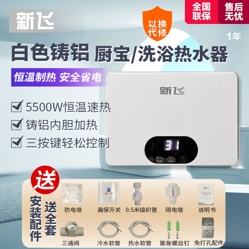 新飞即热式电热水器免储水家用变频恒温卫生间小型速热式小厨宝