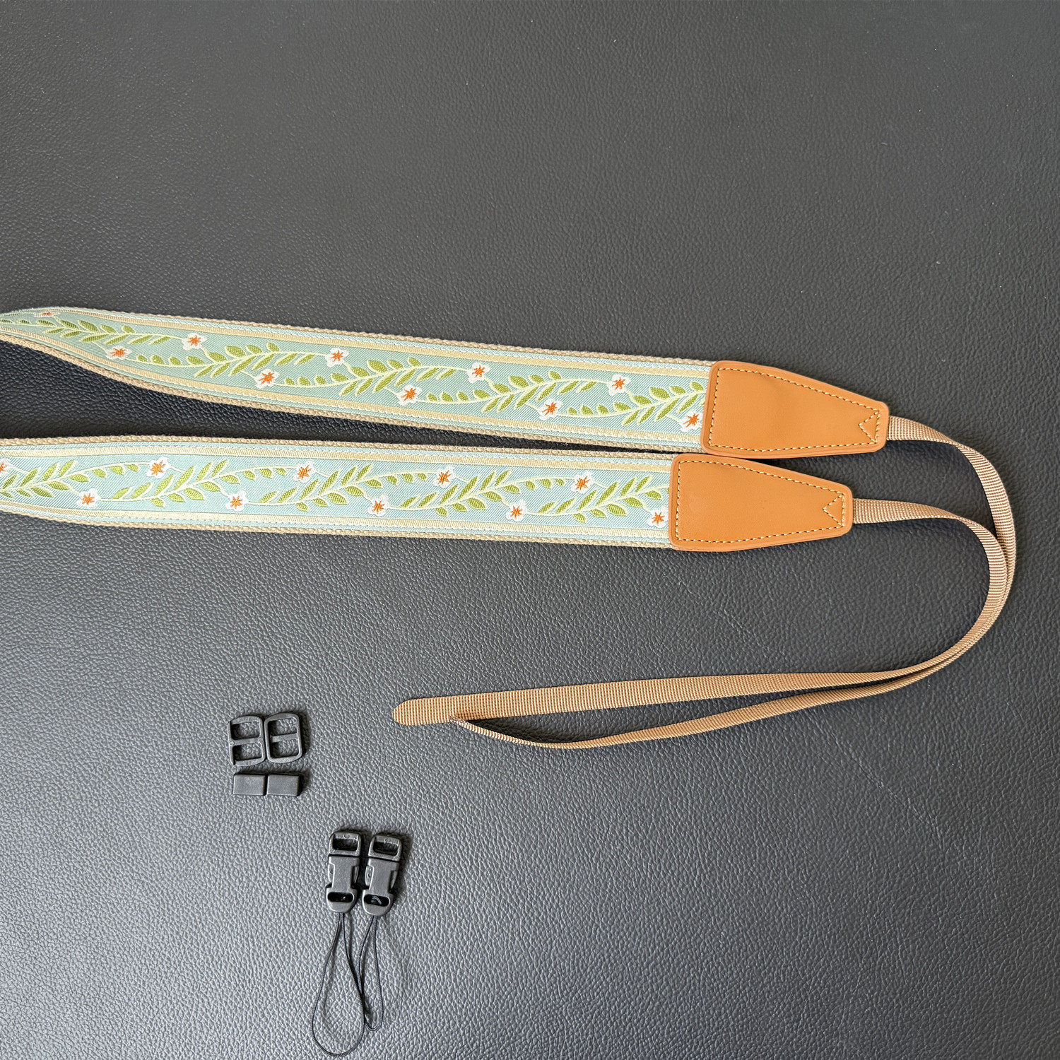 UNIKSTRAP原创高档优雅绣花相机背带单反微单拍立得通用真皮皮头