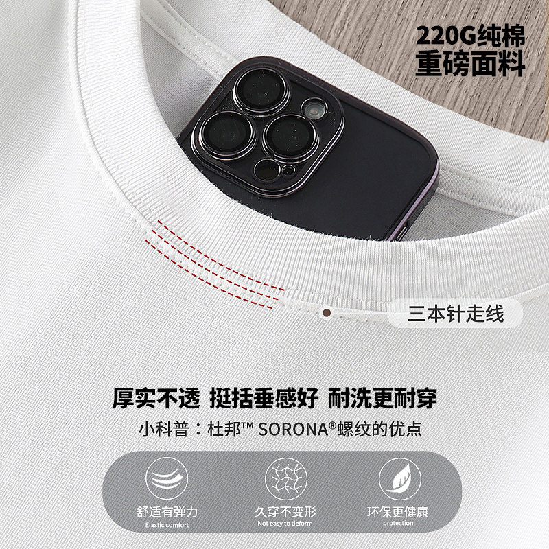 小尼力重磅纯色打底衫纯棉oversize白色短袖T恤男夏季体恤上衣服