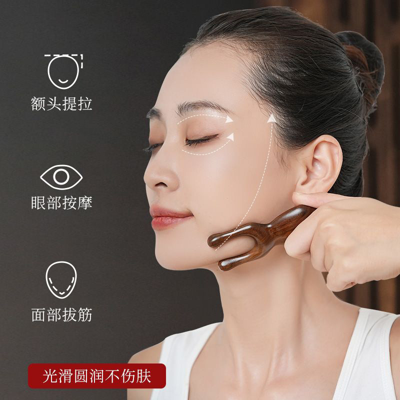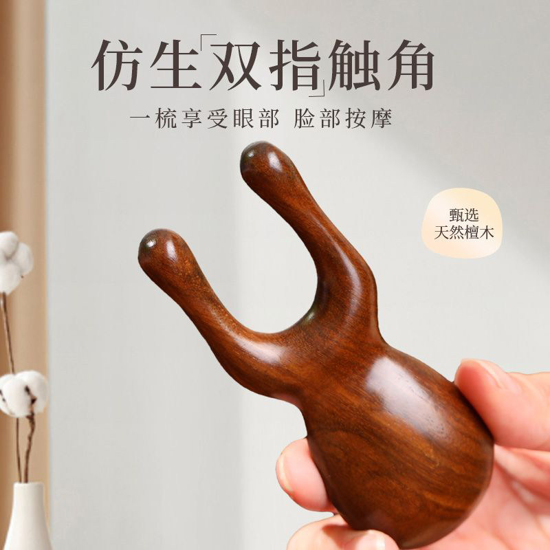 家用檀木小青蛙按摩器眼部按摩梳鼻刮经络梳神器木梳子加厚便携
