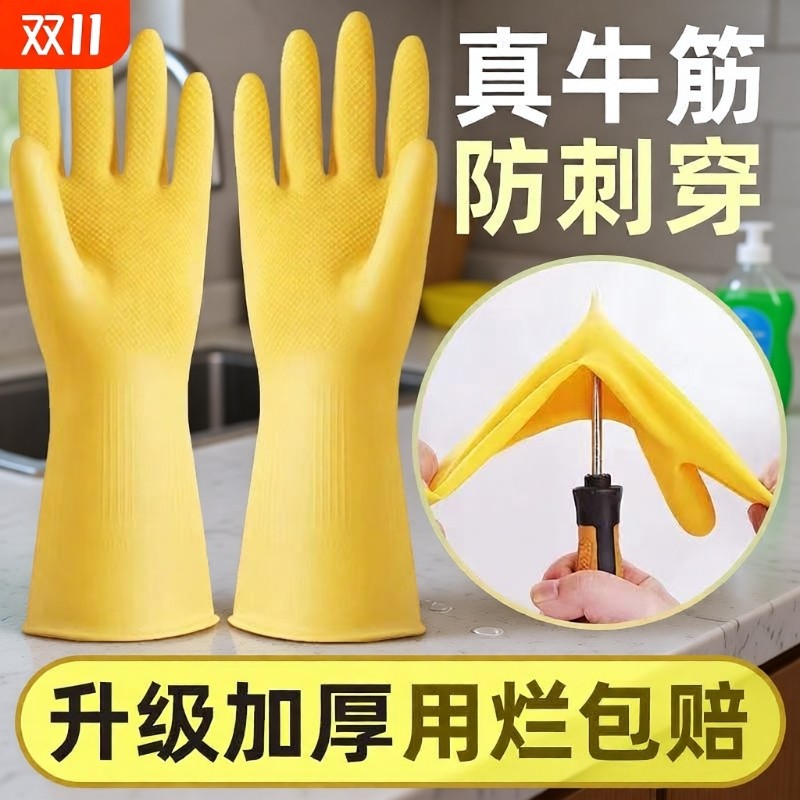 牛筋乳胶手套家务洗碗厨房耐用加厚橡胶硅胶劳保耐磨防水防护厚款