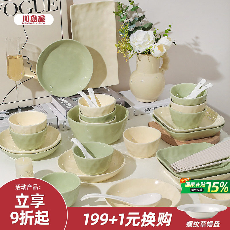 川岛屋奶油风碗碟套装家用2025新款乔迁新居餐具盘子碗筷组合碗具