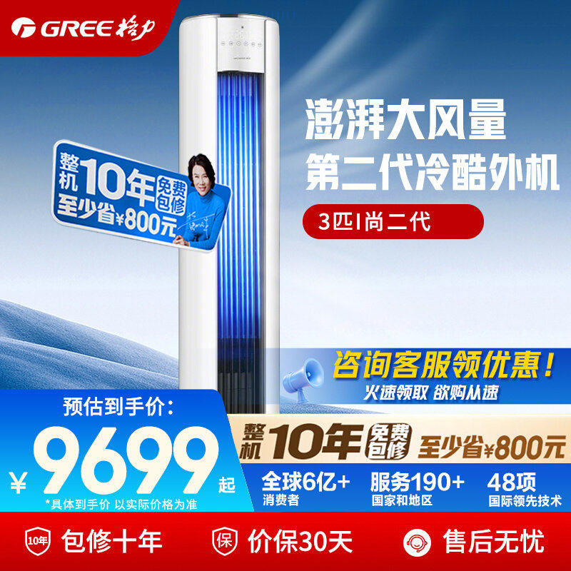【官方自营】格力空调3匹i尚二代新一级能效变频冷暖立式柜机补贴