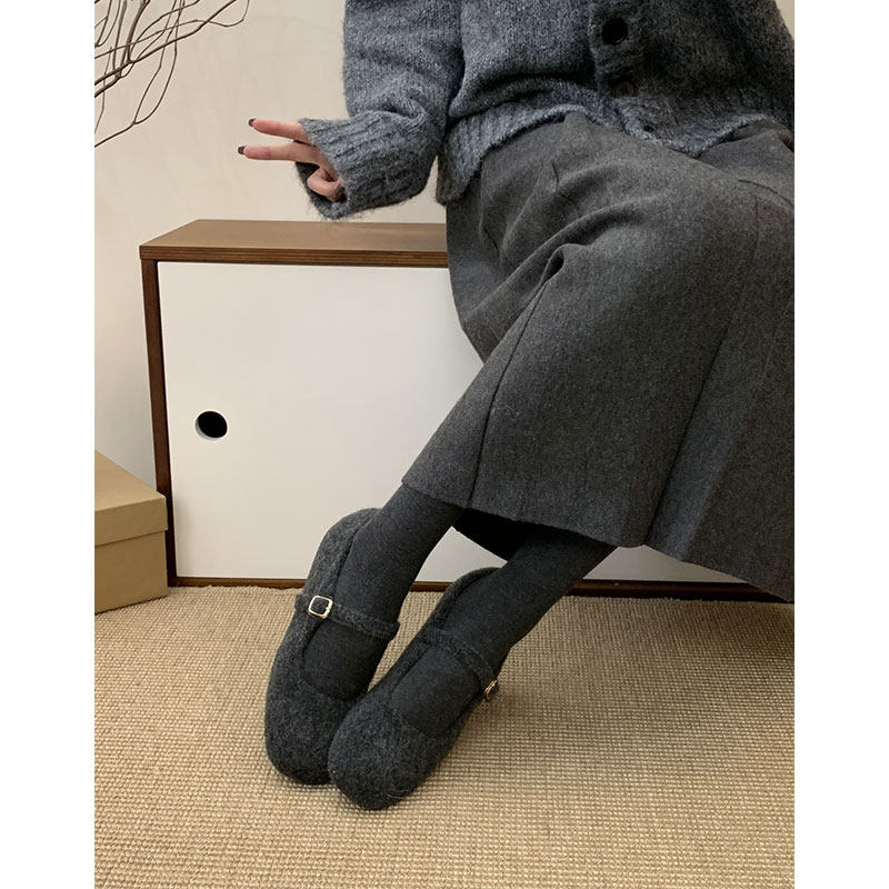 内增高玛丽珍毛毛鞋女冬外穿新款韩版灰色呢子单鞋女厚底加绒棉鞋