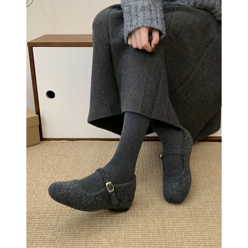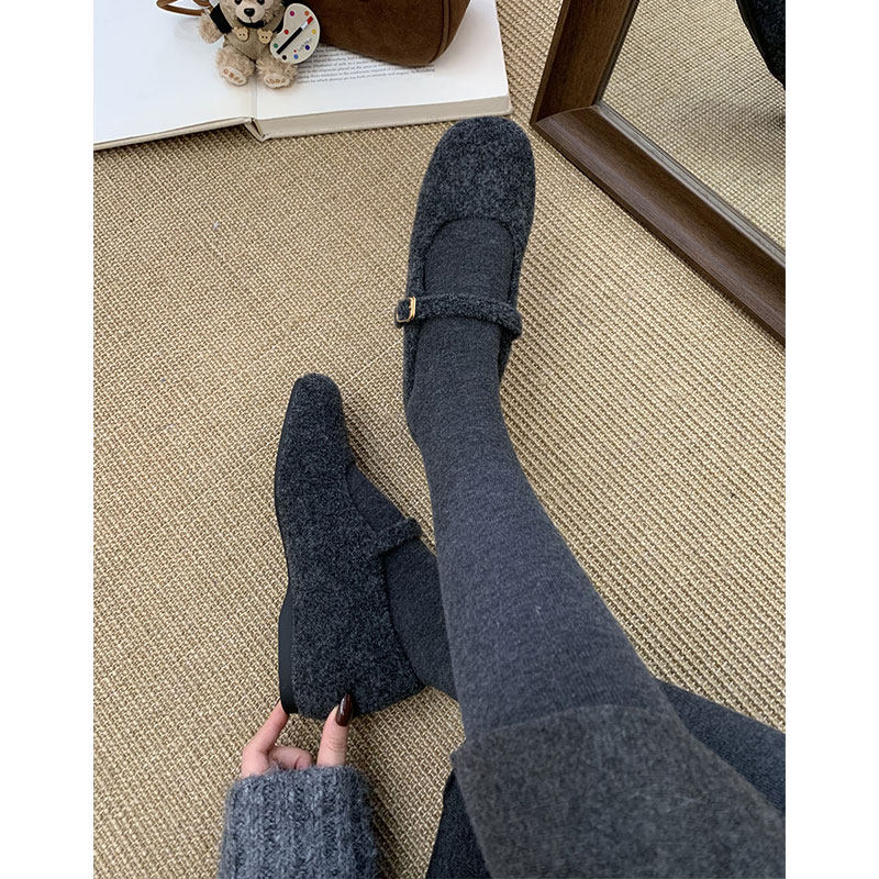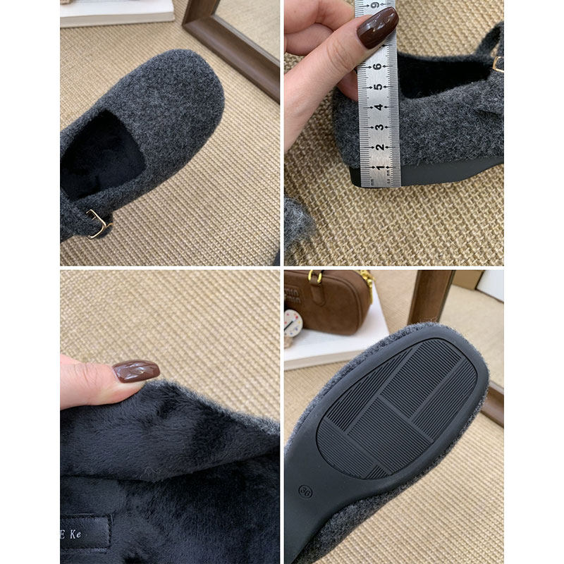 羊皮版复古玛丽珍鞋女方头秋冬季加绒保暖毛毛棉鞋平底晚晚单鞋女