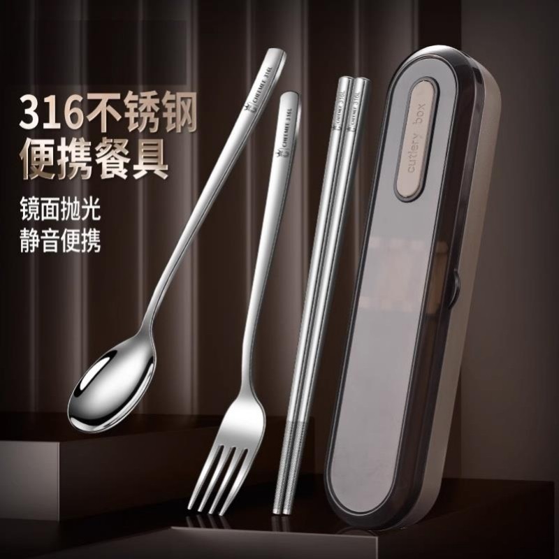 精工316筷子勺子叉子收纳盒餐具304不锈钢单人学生套装折叠食品级