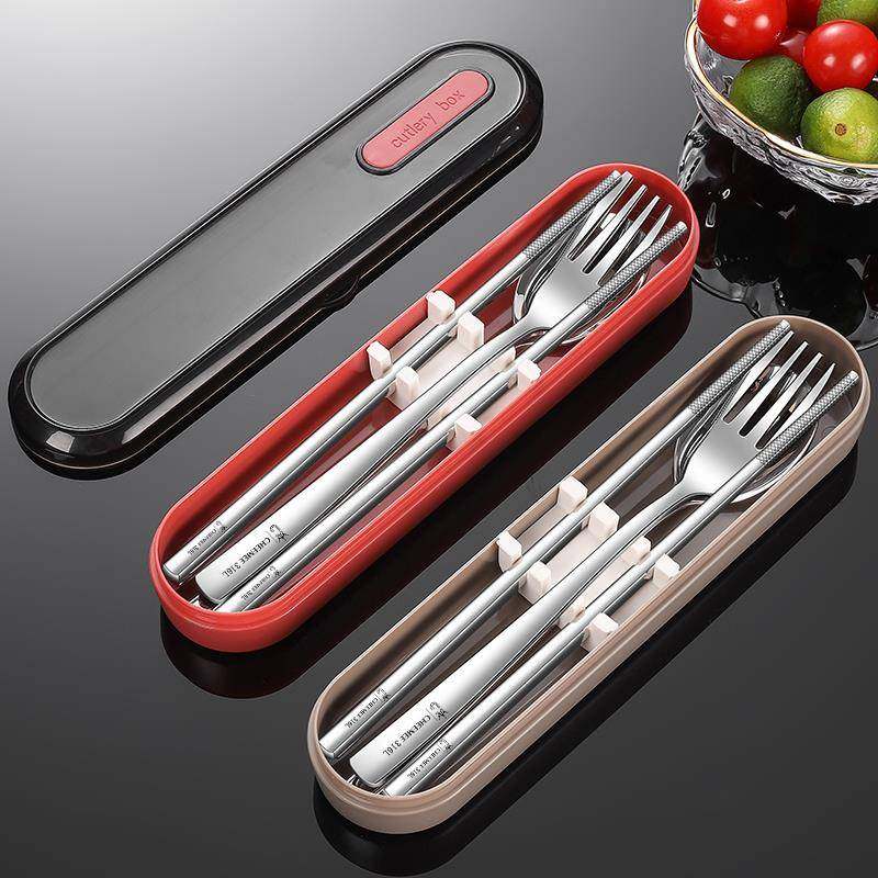 316不锈钢筷子勺子套装一人用便携餐具盒上班族小学生外带收纳盒