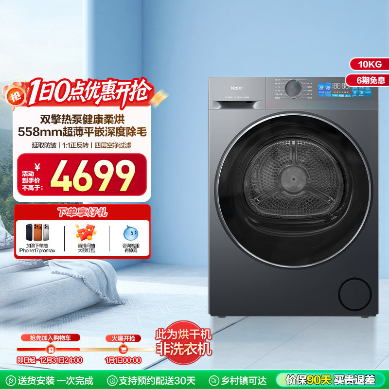 海尔小红花干衣机烘干机家用全自动双擎热泵大容量35D