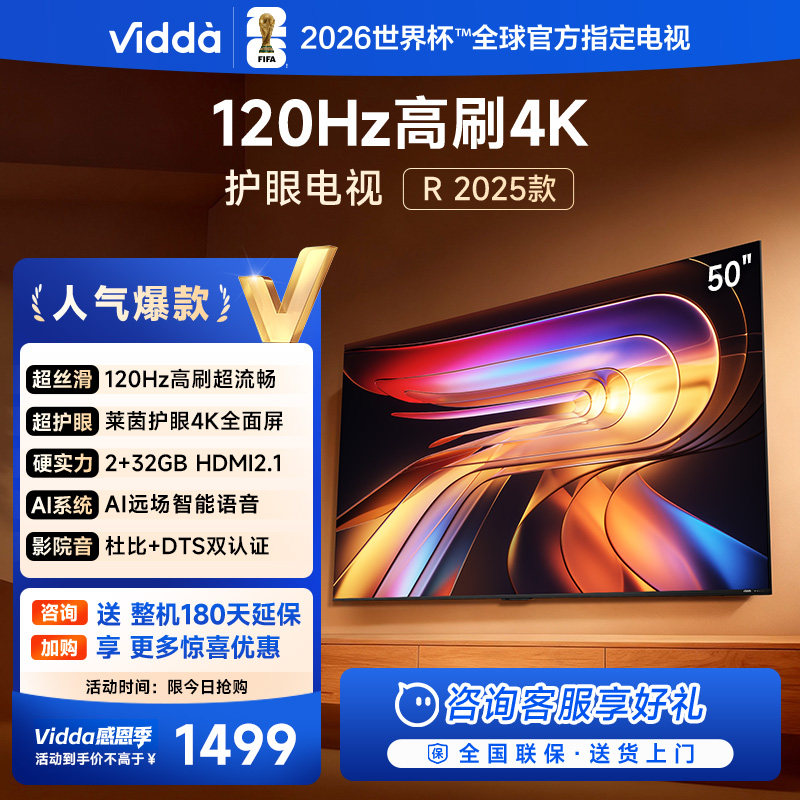 Vidda海信电视 R50 2025款50英寸120Hz高刷 电视机以旧换新补贴55