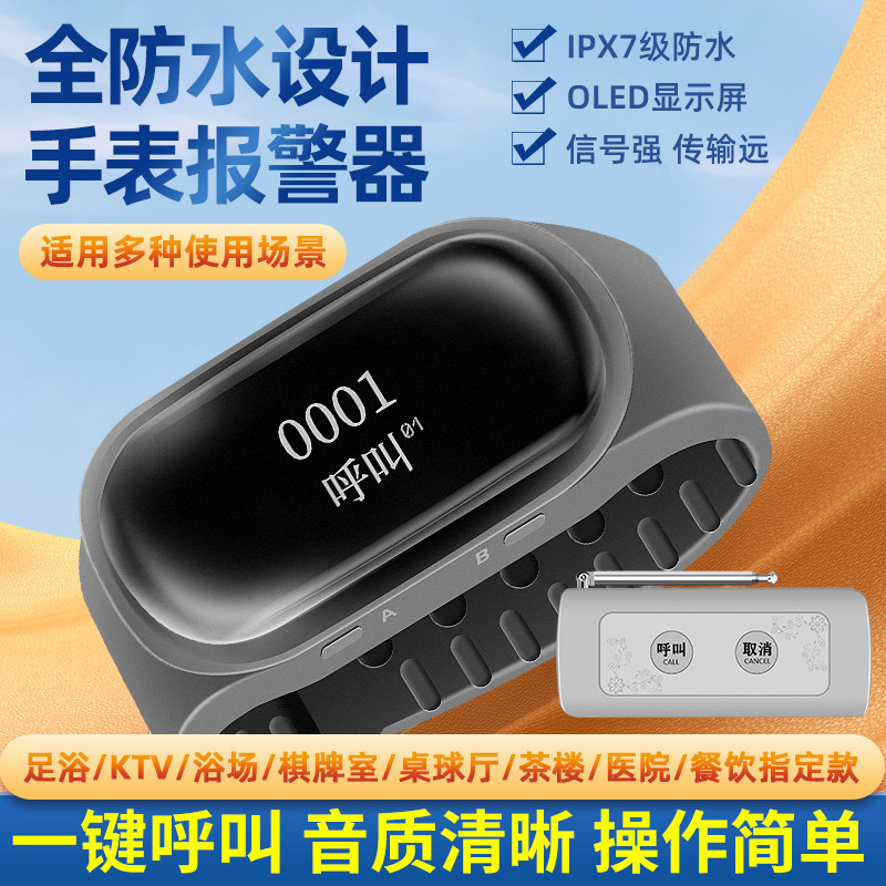 足浴震动手表紧急报警器浴场会所防水技师一键呼叫无线远距离手环