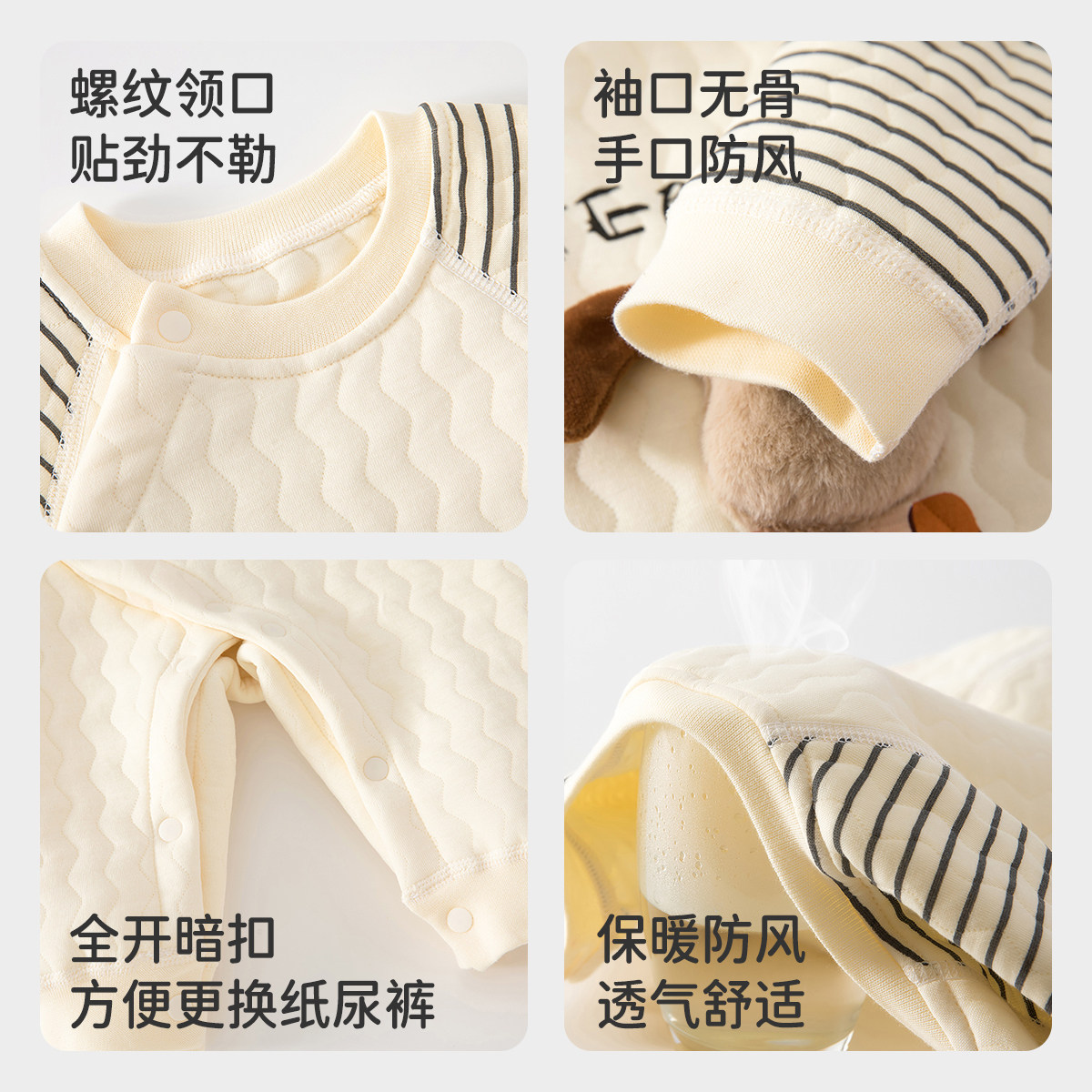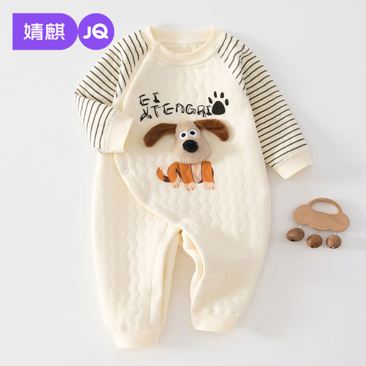 婧麒新生儿婴儿衣服秋冬夹棉满月纯棉初生宝宝秋装连体衣a类爬服