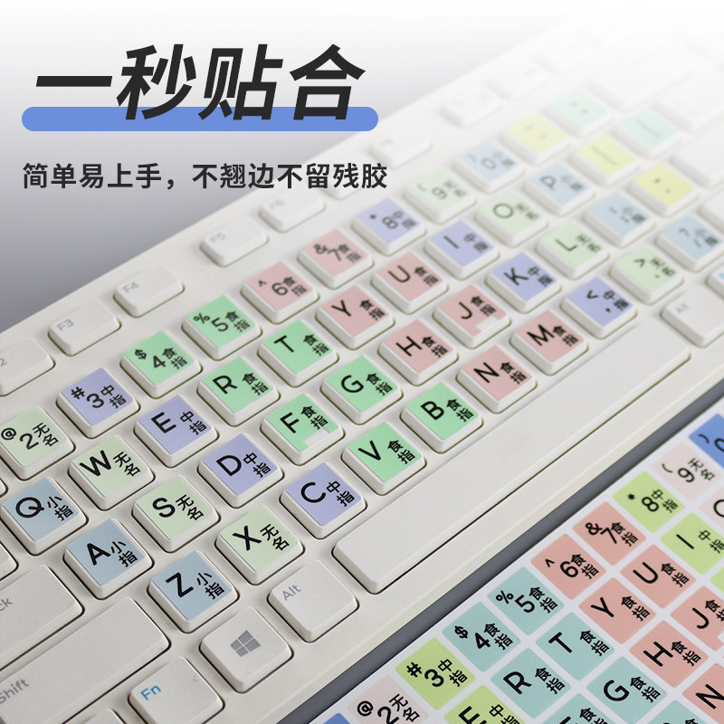 适用台式机电脑熟识键盘颜色分区指法练习器儿童学生盲打字练字编程键盘贴纸初学者初学生键位练习笔记本