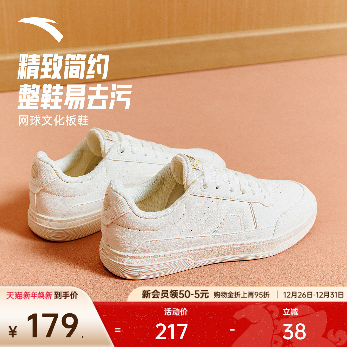 安踏网球文化简约纯色板鞋女冬季潮流百搭小白鞋白色学生运动鞋子