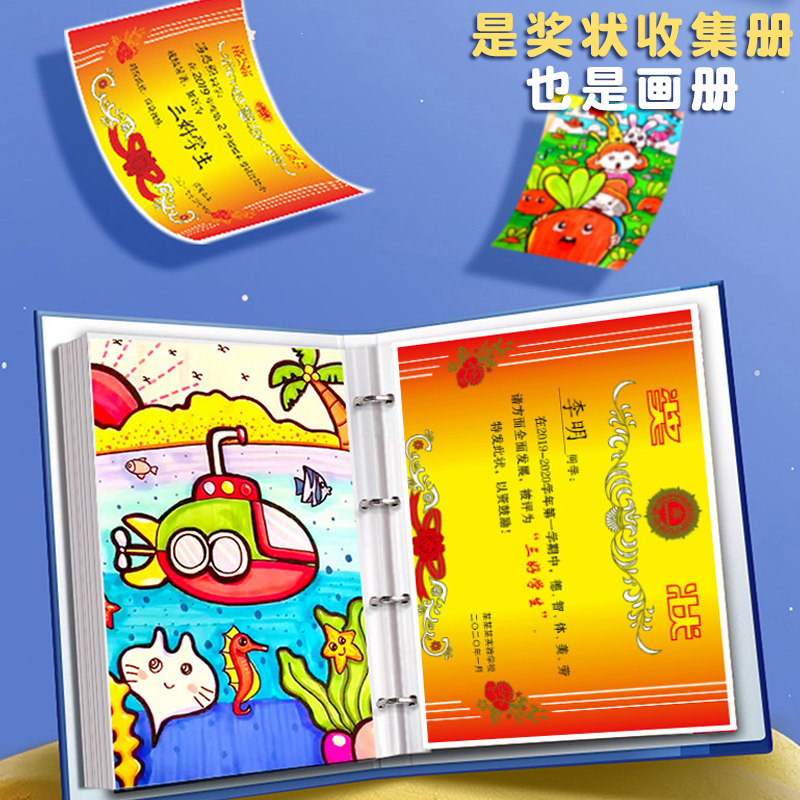 a3奖状收集册女孩男孩相册本文件夹放装荣誉证书收藏袋儿童学生a4活页透明大号高级小奖状画册作品收纳神器