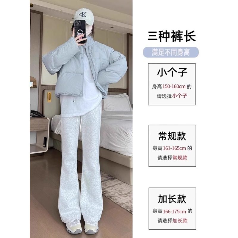 加绒微喇裤女冬季小个子喇叭裤子秋冬梧桐裤休闲阔腿运动卫裤大码
