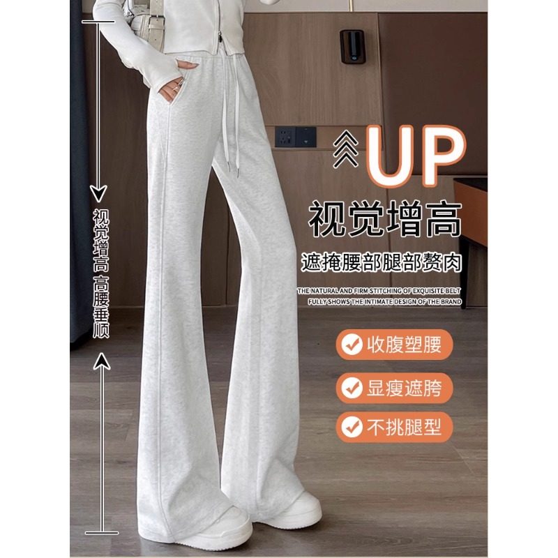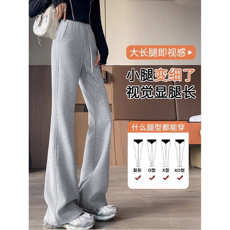 深灰色微喇休闲裤女2025秋冬加绒胖妹妹mm高腰弹力显瘦运动卫裤潮
