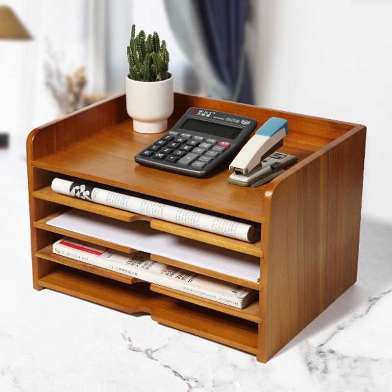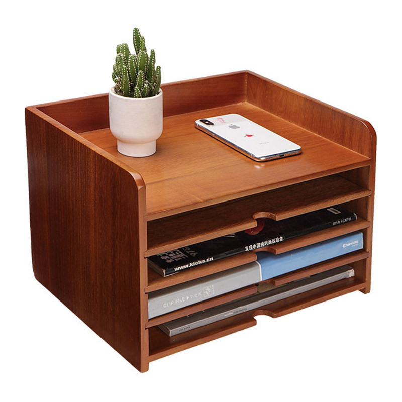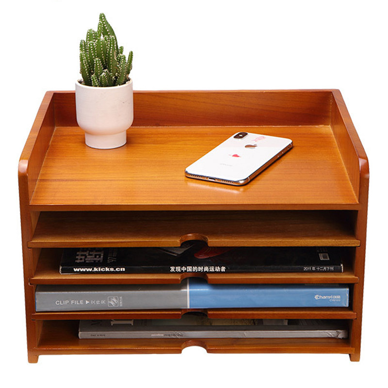 实木办公文件架桌面收纳架多层a4纸文件座办公室家用杂物置物架木