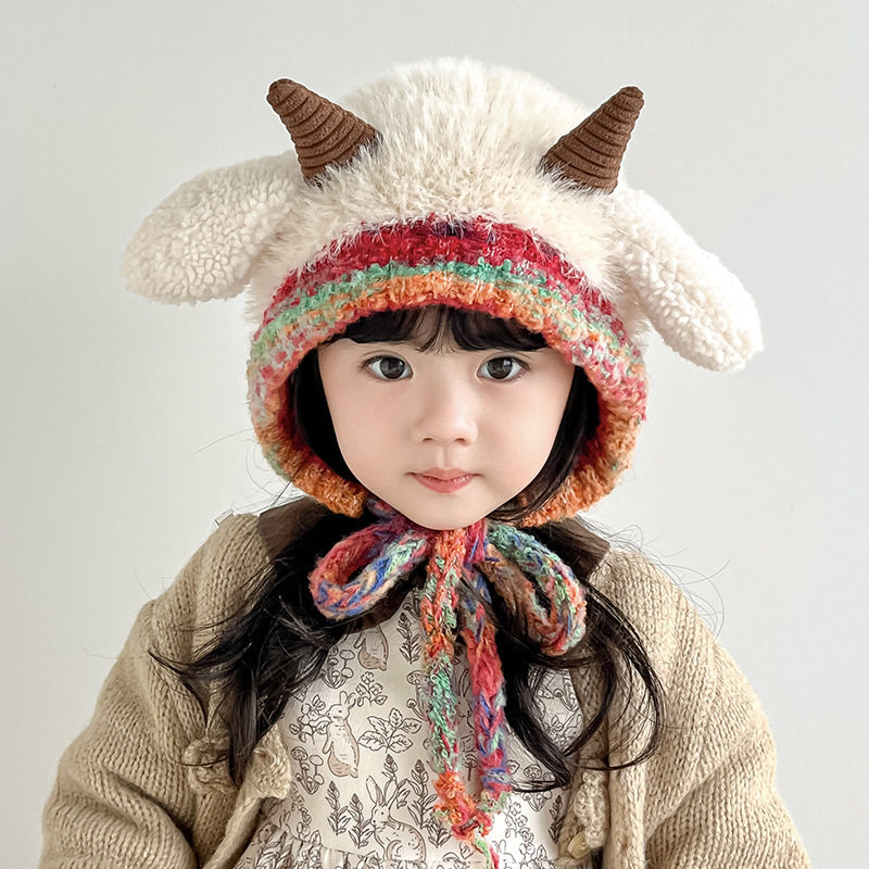 宝宝儿童女童帽子冬季保暖洋气毛绒针织帽护耳加厚防风小羊毛线帽